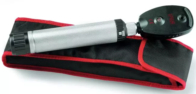 Офтальмоскоп Heine K 180 LED очень удобен в транспортировке, имеет мягкий чехол. Врач может проводить обследования не только в больничном стационаре, но и на дому у пациента.